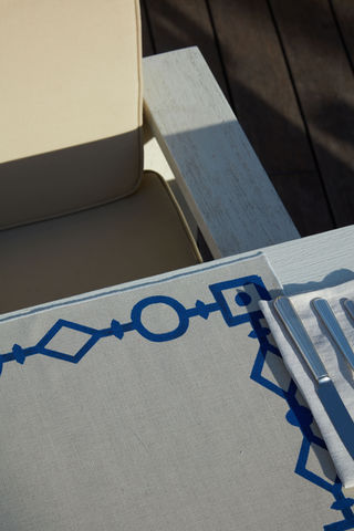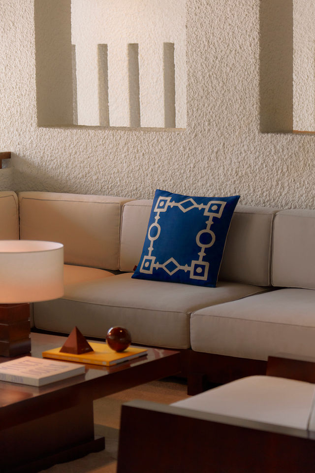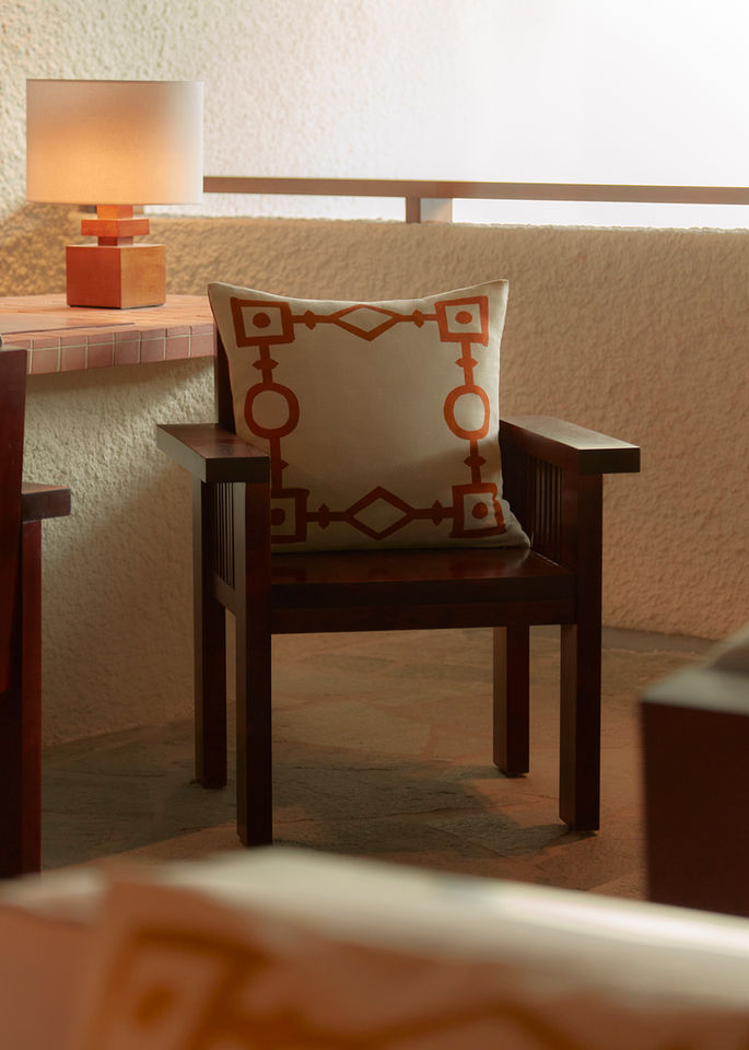 LES ABSTRAITS IS A THOUGHTFULLY CURATED COLLECTION DESIGNED TO SERVE AS A COMPLEMENTARY ADDITION TO OUR MORE ELABORATE OFFERINGS. EACH PIECE IN THE COLLECTION SHOWCASES A DISTINCTIVE GEOMETRIC FRAME PRINT, ARTFULLY RENDERED IN CONTRASTING TONES TO INVITE A DEEPER APPRECIATION OF THE INTERPLAY BETWEEN FORM AND COLOR. THE MOTIFS DRAW SUBTLE INSPIRATION FROM NEOCLASSICAL REFERENCES AND THE ICONIC FURNITURE DESIGNS OF DIEGO GIACOMETTI. THE COLOR PALETTE IS METICULOUSLY SELECTED TO REFLECT THE CAPTIVATING ARTWORKS OF FONDAZIONE MAEGHT, BRINGING A TOUCH OF TIMELESS ARTISTRY AND CONTEMPORARY FLARE.